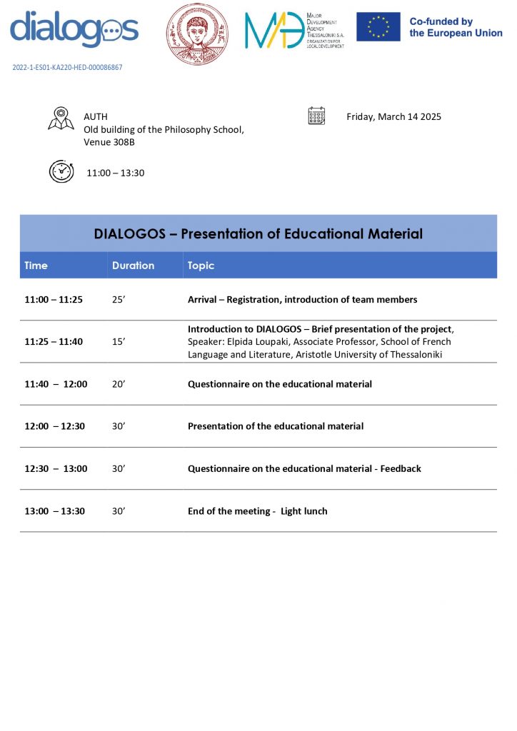 Η Συνάντηση εκπαίδευσης διοργανώθηκε στο ΑΠΘ, στις 14/03/2025 και σ’ αυτήν συμμετείχαν μεταπτυχιακοί φοιτητές στο Πρόγραμμα Μετάφρασης και Διερμηνείας του ΑΠΘ καθώς και Διερμηνείς και Μεταφραστές σε Δημόσιες Υπηρεσίες για Γλώσσες Μικρότερης Διάδοσης. Στόχος της Συνάντησης ήταν να φέρει πιο κοντά τους συμμετέχοντες με το επάγγελμα της Διερμηνείας και Μετάφρασης στις Δημόσιες Υπηρεσίες, παρουσιάζοντας κάποιες πτυχές που σχετίζονται με την προετοιμασία του επαγγέλματος αυτού. Ειδικότερα θα αναλύθηκαν οι ανάγκες σε ορολογία και παρουσιάστηκαν κάποια εργαλεία και τεχνικές που χρησιμοποιούνται για την επίλυση ορολογικών προβλημάτων.